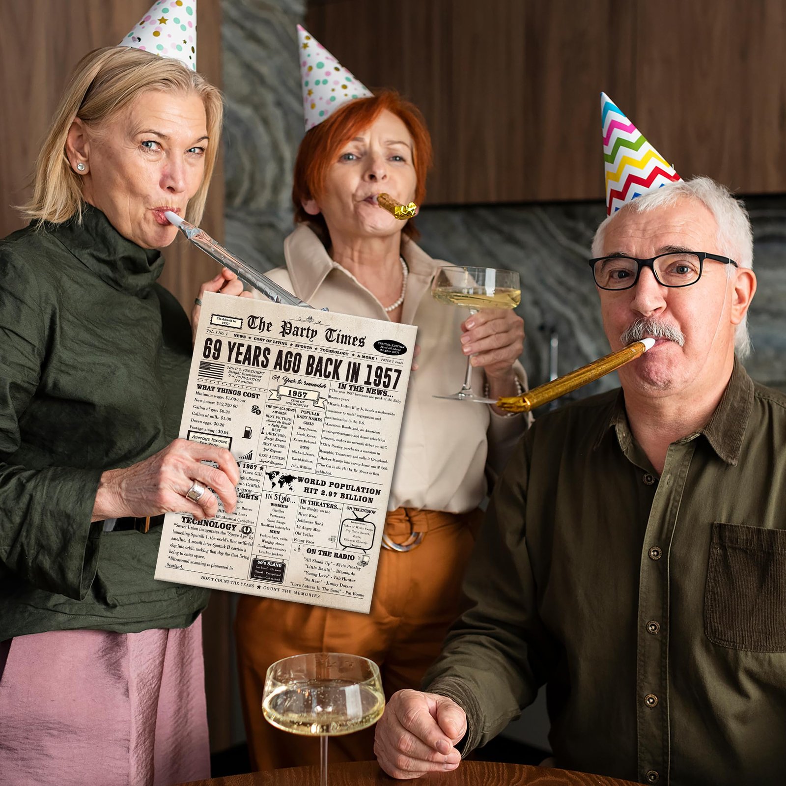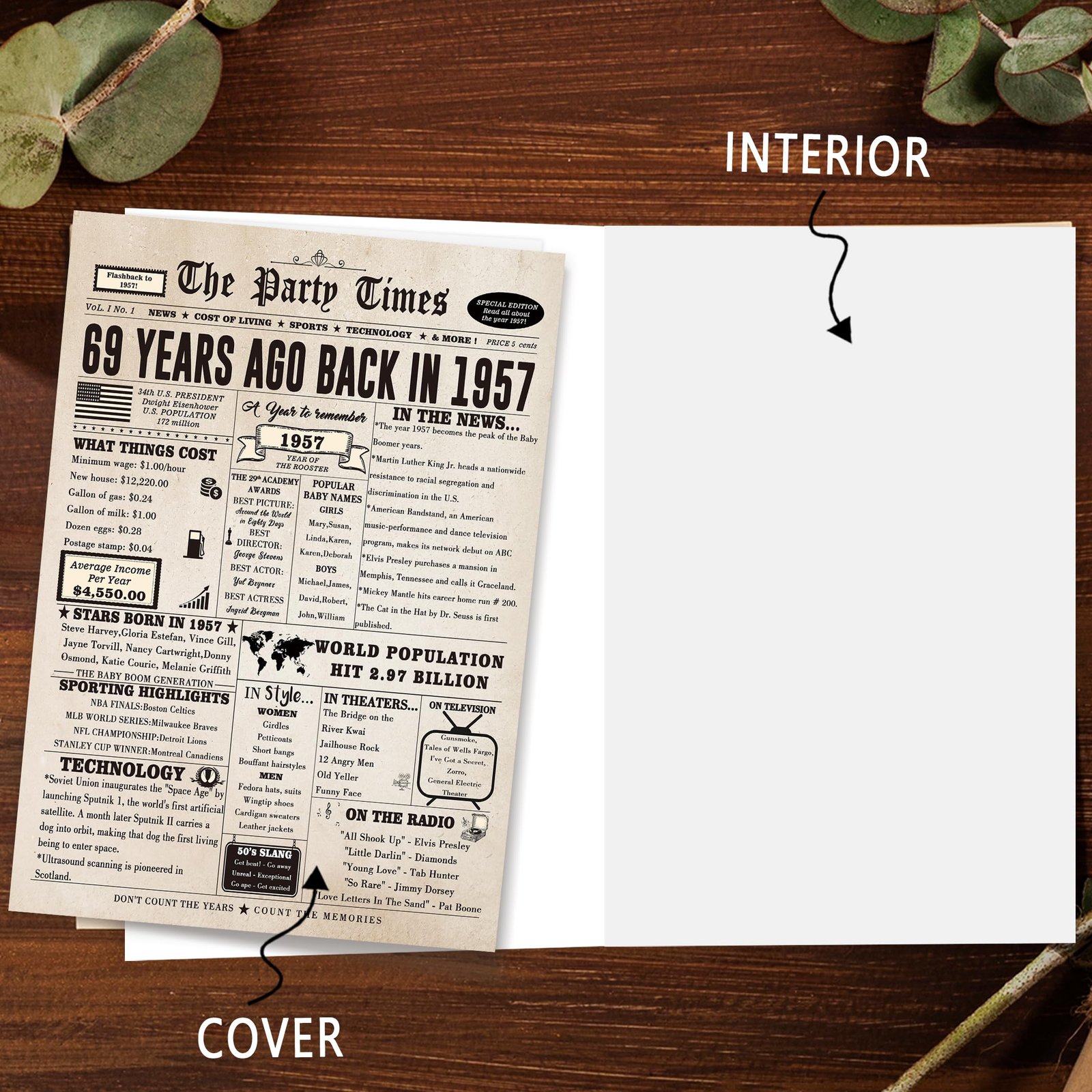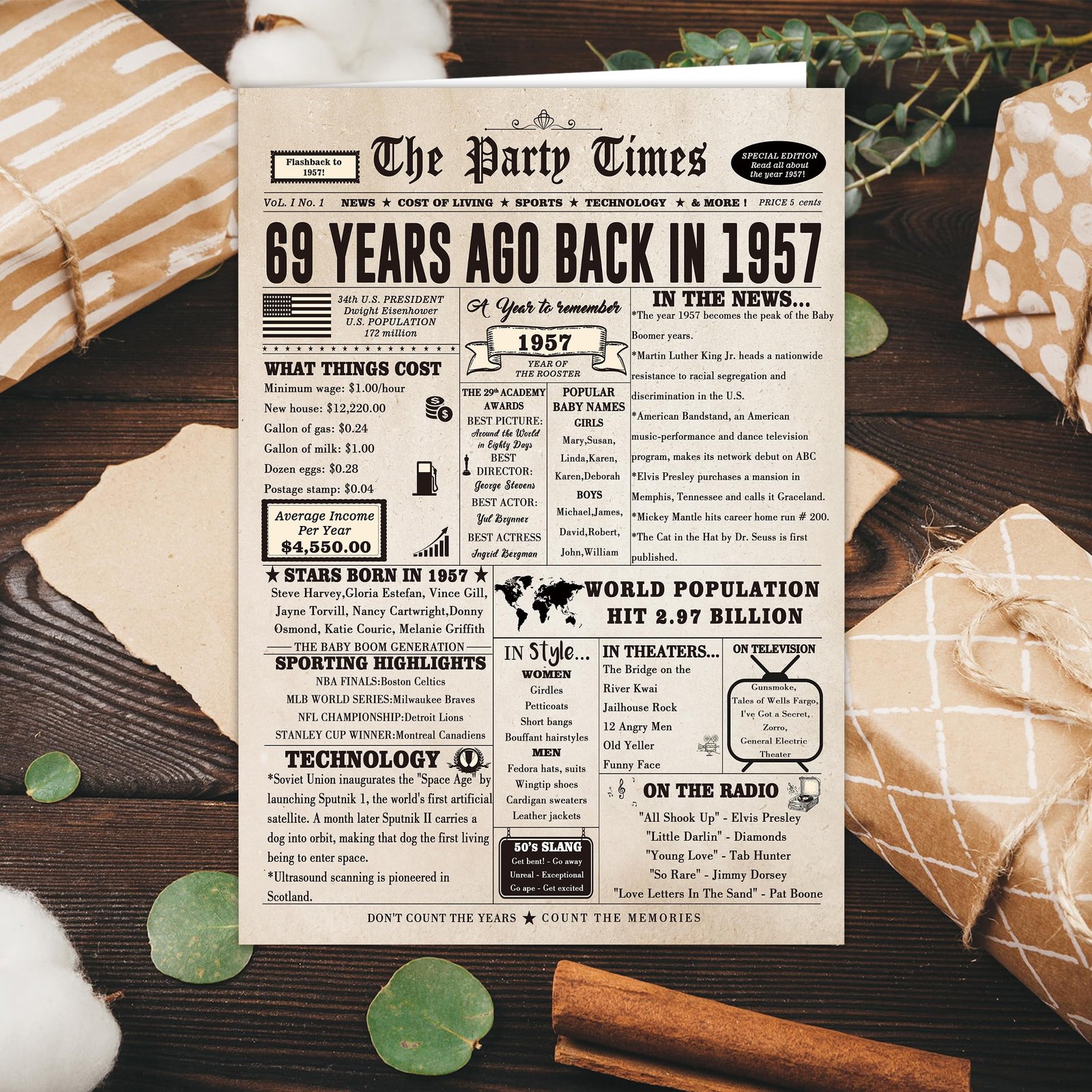 • This large 69th birthday card features a vintage newspaper design, showcasing important events, movies and sports events from 69 years ago